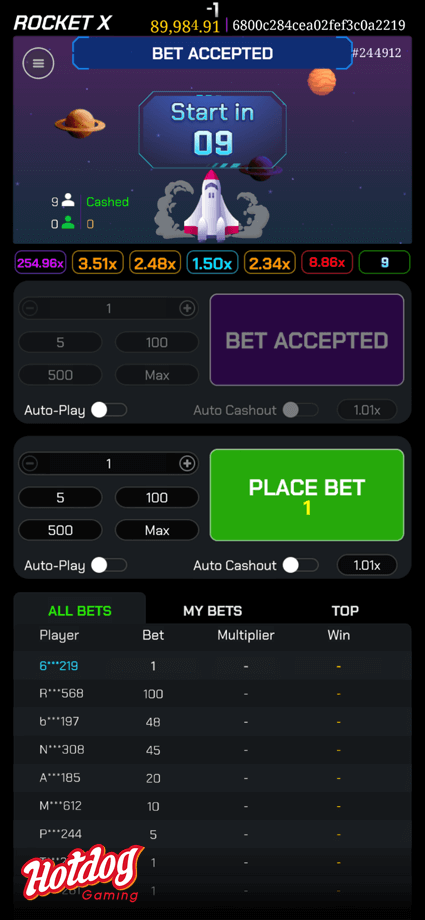 Rocket X delivers an exhilarating "Risk and Reward" experience where players place bets and predict the multiplier at which the rocket will blast off into space!
